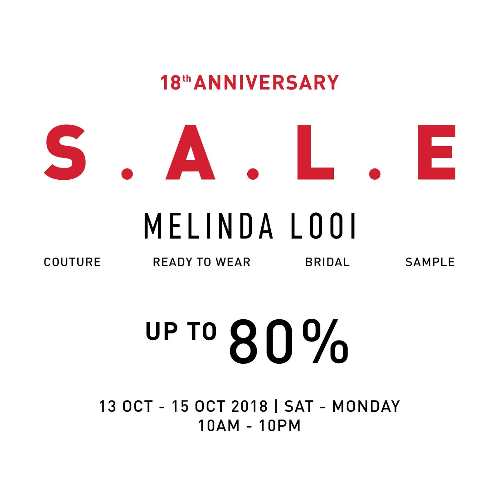 MELINDA LOOI – 18TH ANNIVERSARY SALES – UP TO 80% OFF –