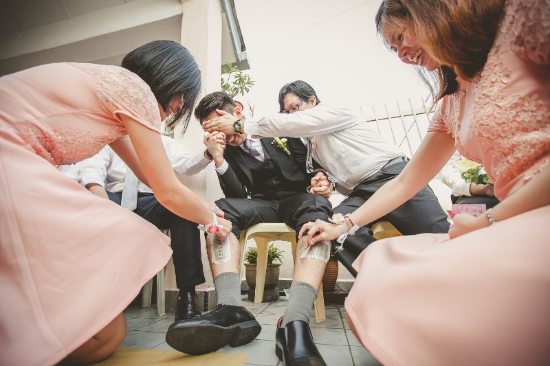 Wow, you are so going to get pregnant! It is a Chinese tradition that a boy jumps on the bridal bed to bring fertility. |