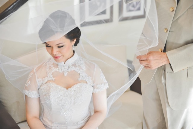 slimming effect on her face, produced the princess bridal image she