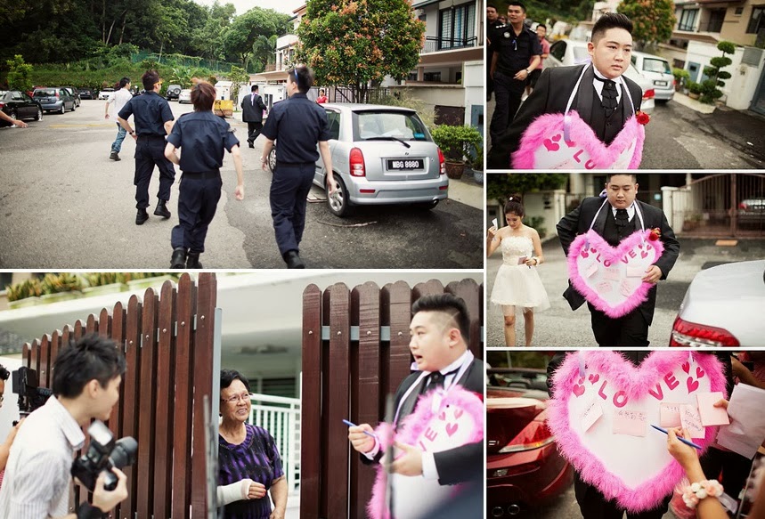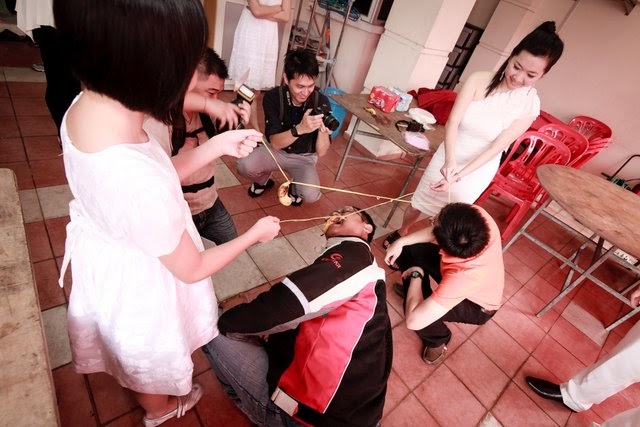 Part of the Chinese wedding ritual includes the groom entourage fetching his bride from her parents home. The bride’s maids aka “ji mui” would block the way and present some challenges for the boys before opening the door. No pain no gain! Some games can be crazy, giving the gate crashing groom a super hard time before he can get his wife. SAVE the Groomsmen Facebook page detests silly door games and advocates that they should be stopped. I think the girls should not go overboard, opt for some fun and light-hearted games just to cheer up the event. Also watch the time. Besides having to go through all these tests, the groom has to prepare a red packet (ang pow) for the ji mui team. No money no honey. **Evil laugh**