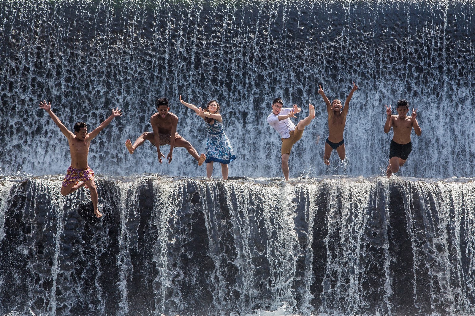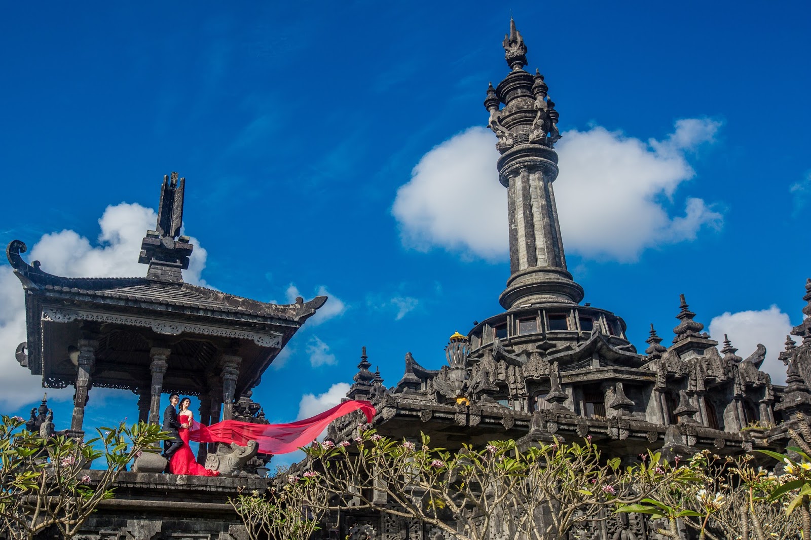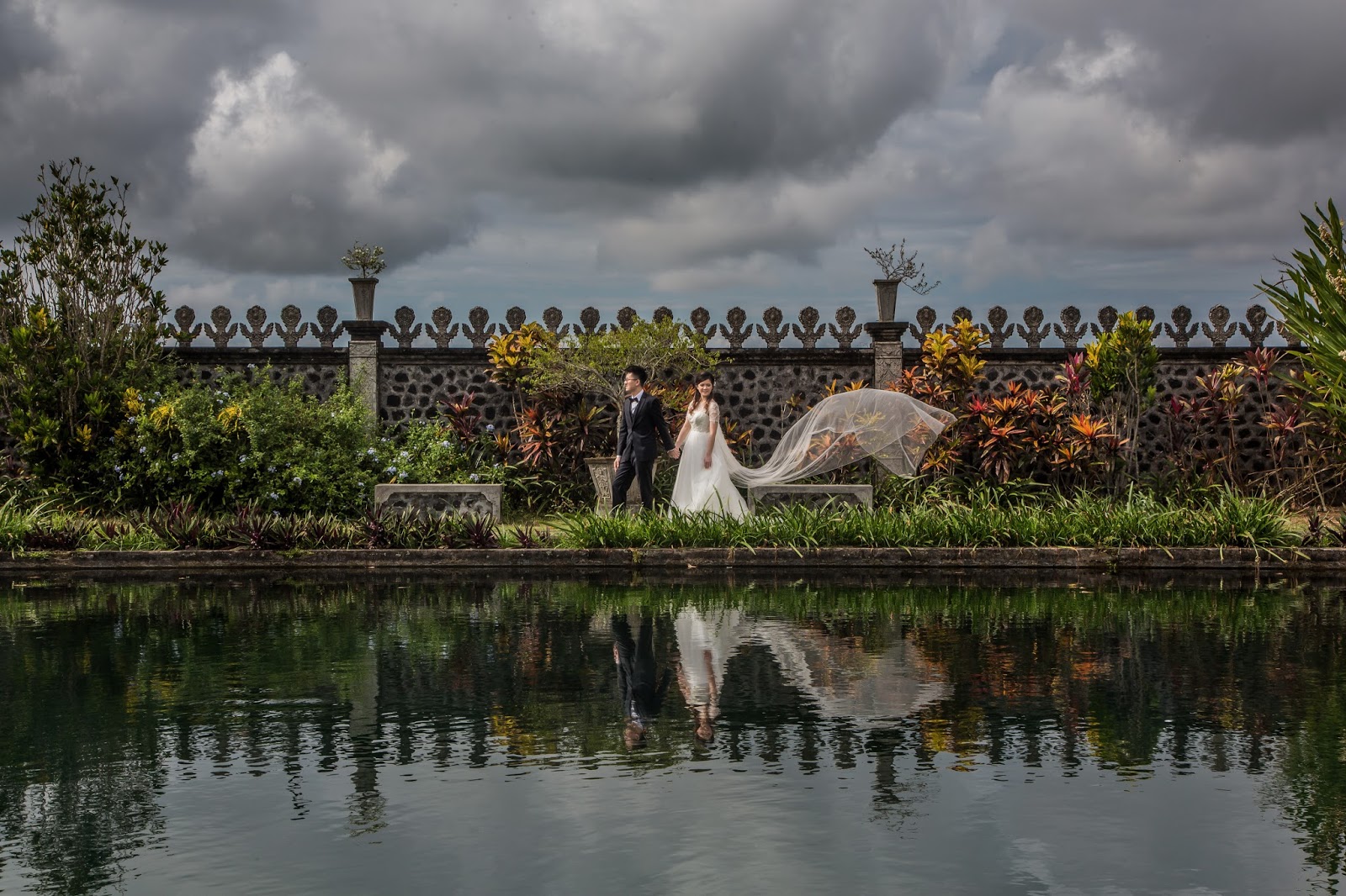 Tukad Unda Dam, left from the Dutch colonization of Bali, was built on the Tukad Unda river. It is a famous spot among the locals. The dam is a source of water as well as play for the children. This image of the couple and a few Balinese kids splish splashing in the water captured by Mirage Bridal is intense and at the same time lighthearted. The pure emotions are turned into a stunning piece of fine art.