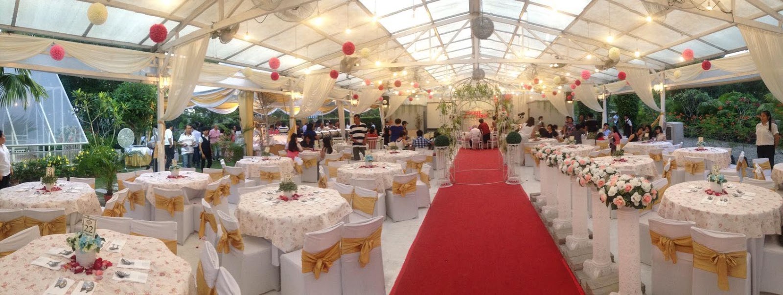 Geneva Garden Banquet is absolutely gorgeous. The wedding reception will be held in a beautifully decorated tent surrounded by lovely flowers, greenery and landscaping. There is a white bird cage with colorful flowers perfect for the the couple’s grand entrance. Wedding food is fresh and delicious as well. On a side note, some of the guests mentioned that the sound system could have been a bit louder.