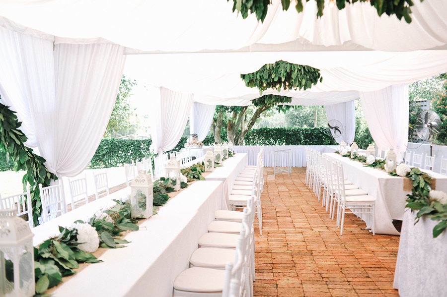 The 3,000ft² paved main yard can accommodate up to 300 guests (30 tables) whilst the property’s 24,000ft² lawn with luscious aged trees provides the perfect setting for activities or al fresco dining. The venue is peacefully tucked in an suburb about 30km from KLCC. It is perfect for a traditional Malay village/vintage wedding theme. The interior has a rather vintage classic feel.