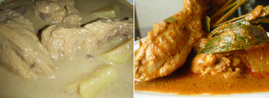 | Left: Ayam kurma. Right: Ayam kari kentang |