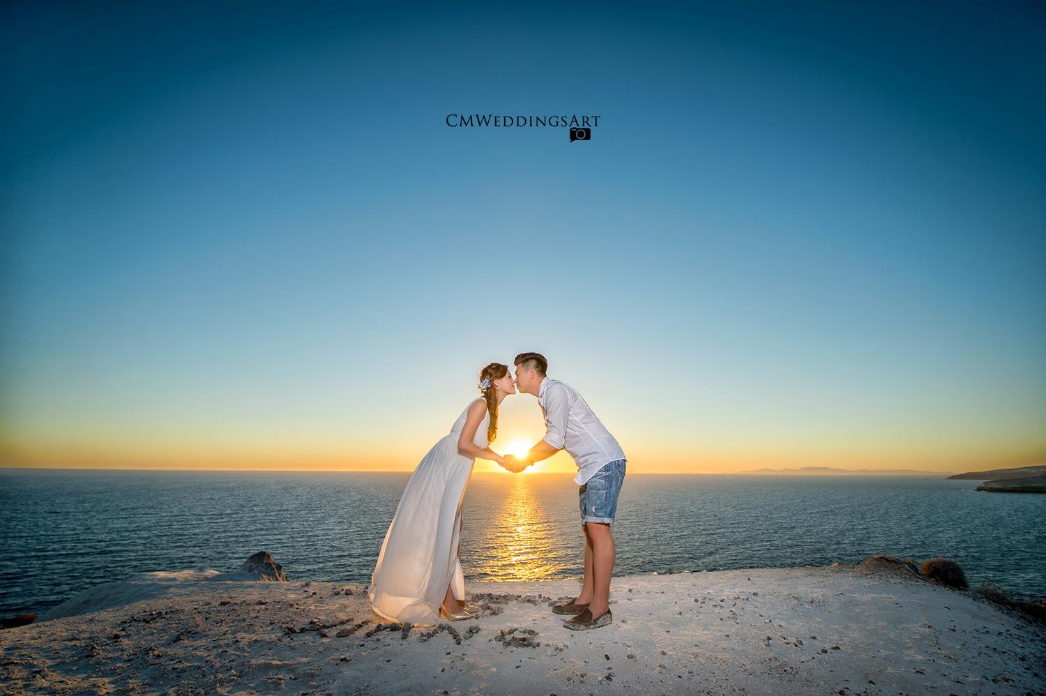 You can get the most beautiful sunset over the horizon in Santorini