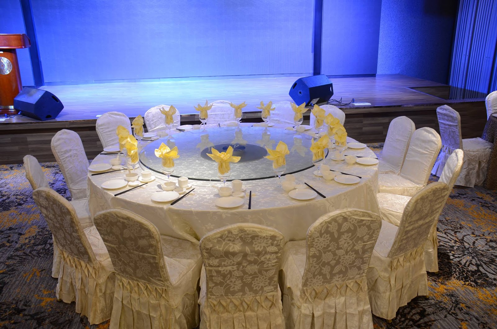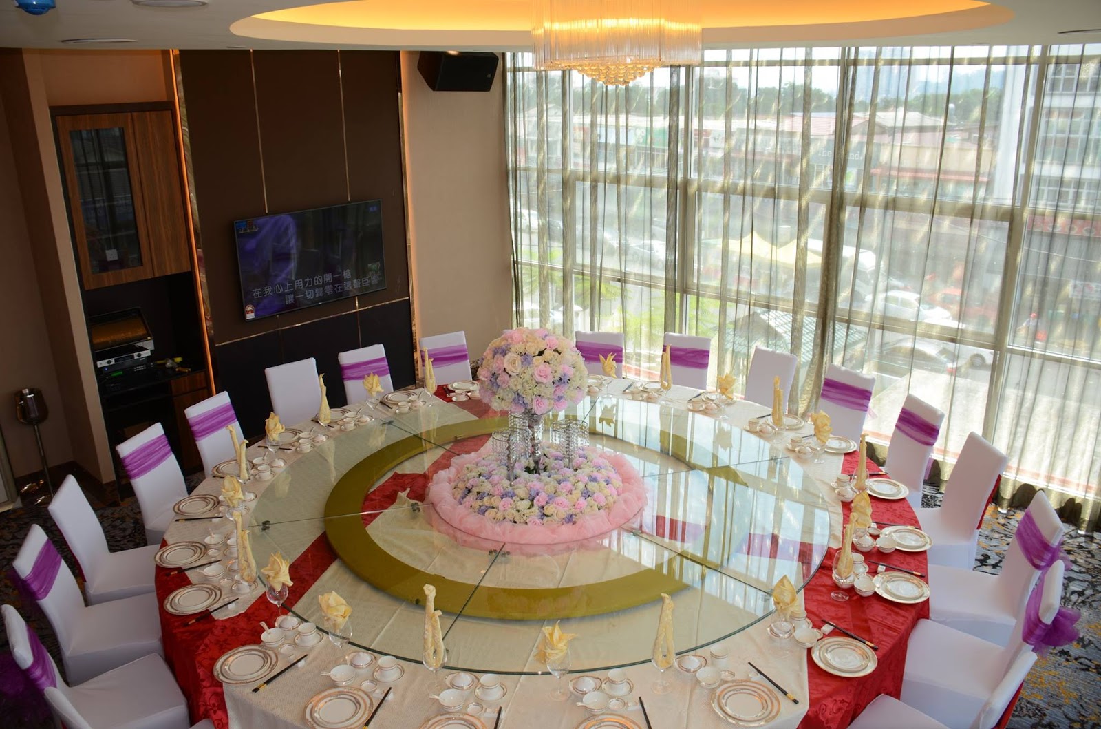 Wedding Packages 2020: RM1599nett | Capacity: more than 400 pax | The banquet hall has an elegant modern design with glitzy crystal lighting that blankets the entire ceiling, carpeted, and is well designed to reduce chatter noise. Air Conditioning is set at a very comfortable temperature. However there are a couple of blocking pillars. They have a big screen on stage + a smaller LCD TVs around to show the activities in the kitchen, kinda good gimmick.