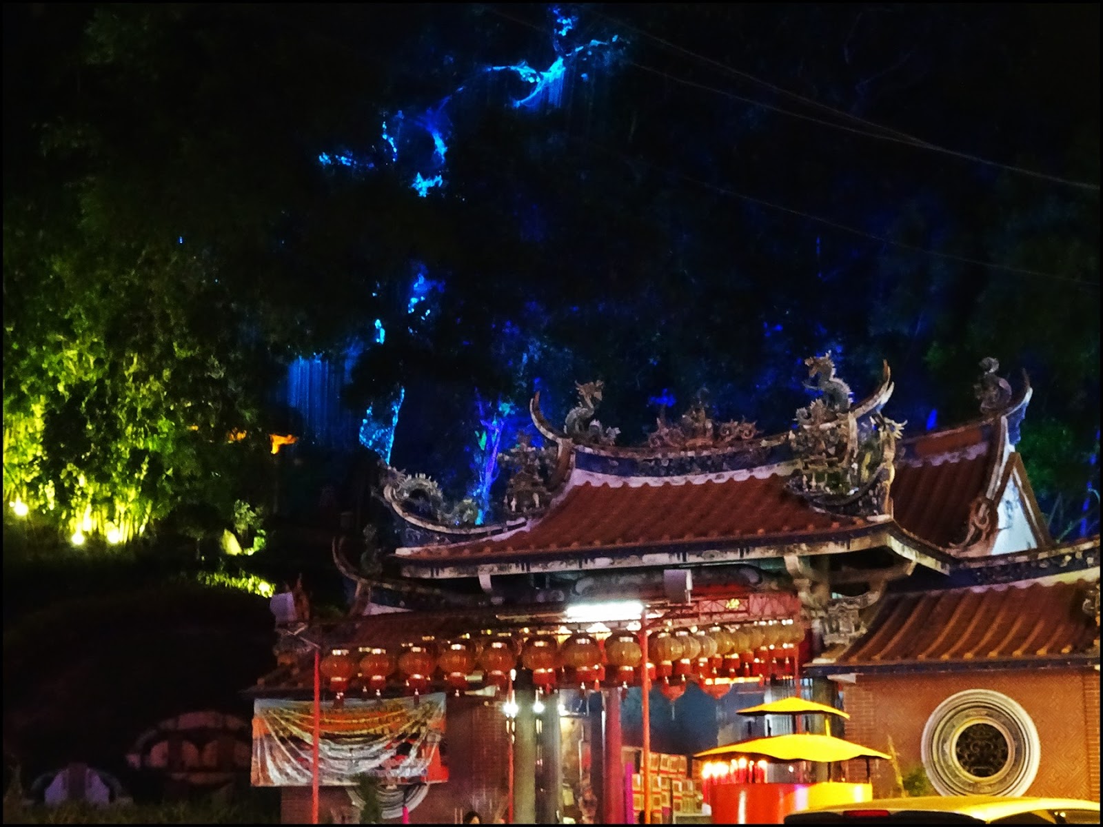 | Tanjung Tokong Tua Pek Kong Temple with the illuminated garden at the back |