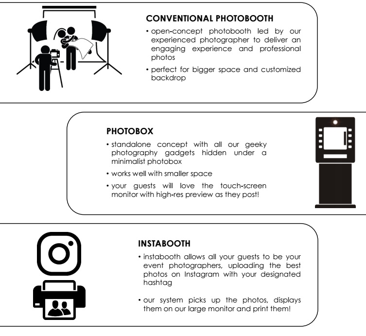 ADD ONs and other services: customised backdrop, photo sleeve, props, extended hours, event photographer, dessert table, event decor