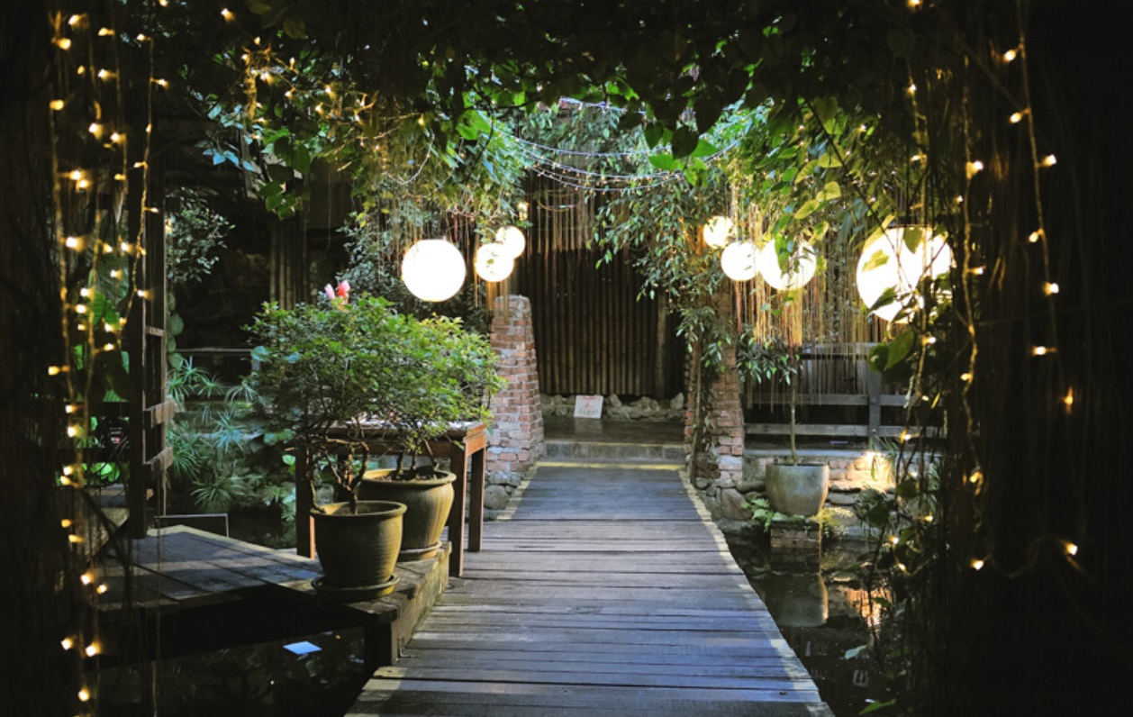 Couples have the options of having their receptions at the cosy restaurant, go al-fresco on the “Alang-Alang” roofed wooden deck overlooking a man-made pond named Serambi, or enjoy an intimate celebration in the hillside deck aptly named Loteng. The place is beautiful especially at night as the lighting is catered for a romantic ambience. Definitely one of the most romantic places in KL. The entire venue is very green and very earthy. Their dining tables and chairs are made out of Indonesian teak wood and left bare in display.