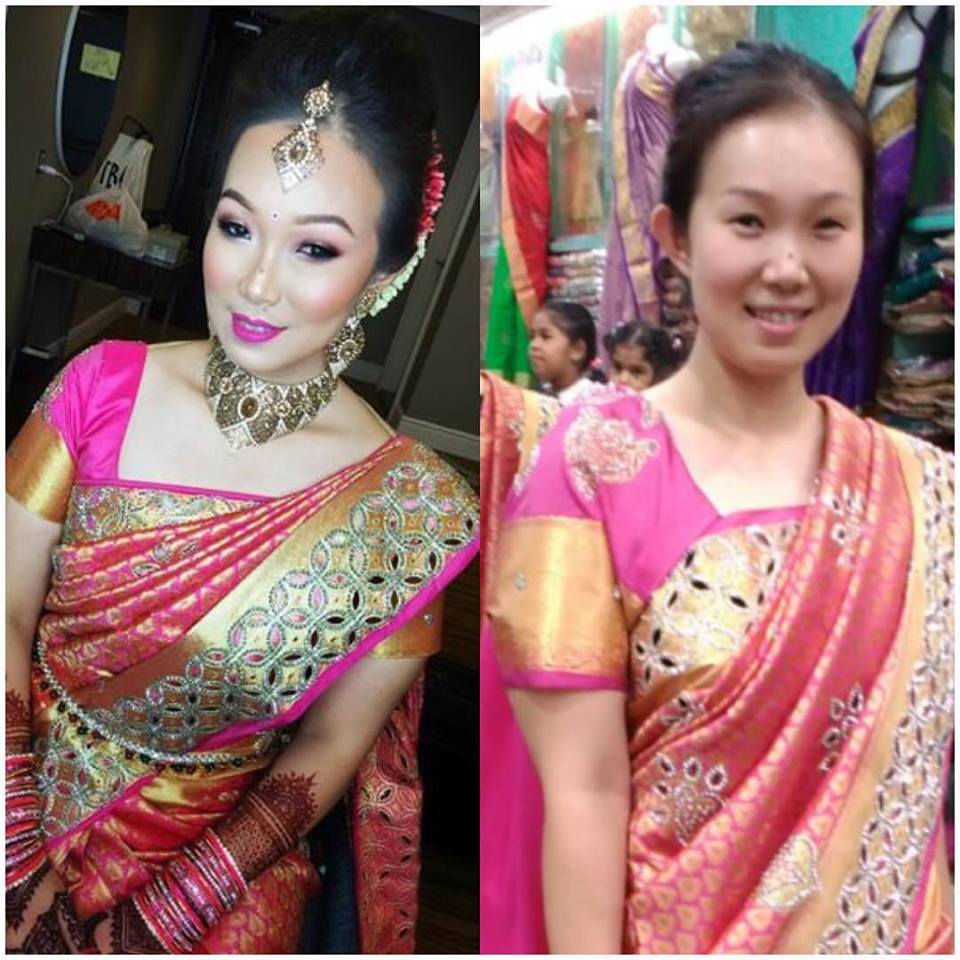 Shanti and her daughter Jastina (makeup artist, tailor, mehndi artist, stylist) run a beauty salon one floor above Madras Store in Jalan Masjid India. Their skills in beautifying their brides leave them awe-struck. The art of saree tying and draping, mehndi styling, bridal makeup and hair require a great amount of training.