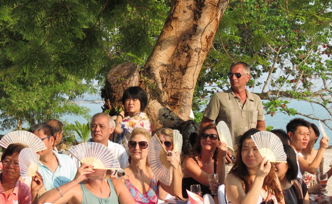 | Guests were given fans under the hot sun |