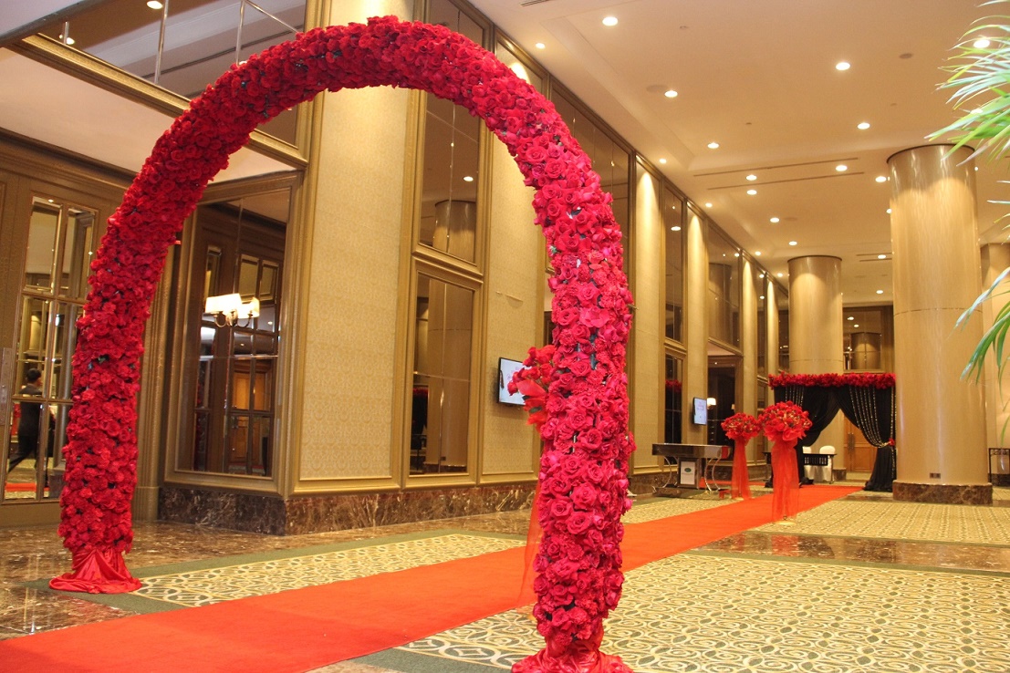 | Fresh flower wedding arch at the Grand Entrance of the ballroom is inclusive the package |