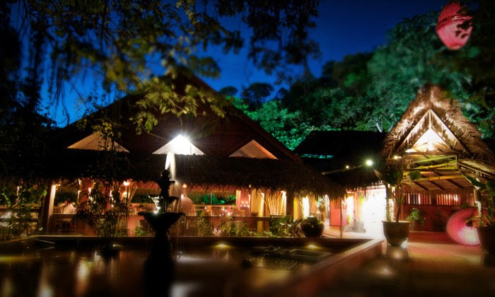 Softly lit and furnished with wood and rich blood-red accents, Tamarind Springs surrounds diners with rustic luxury |