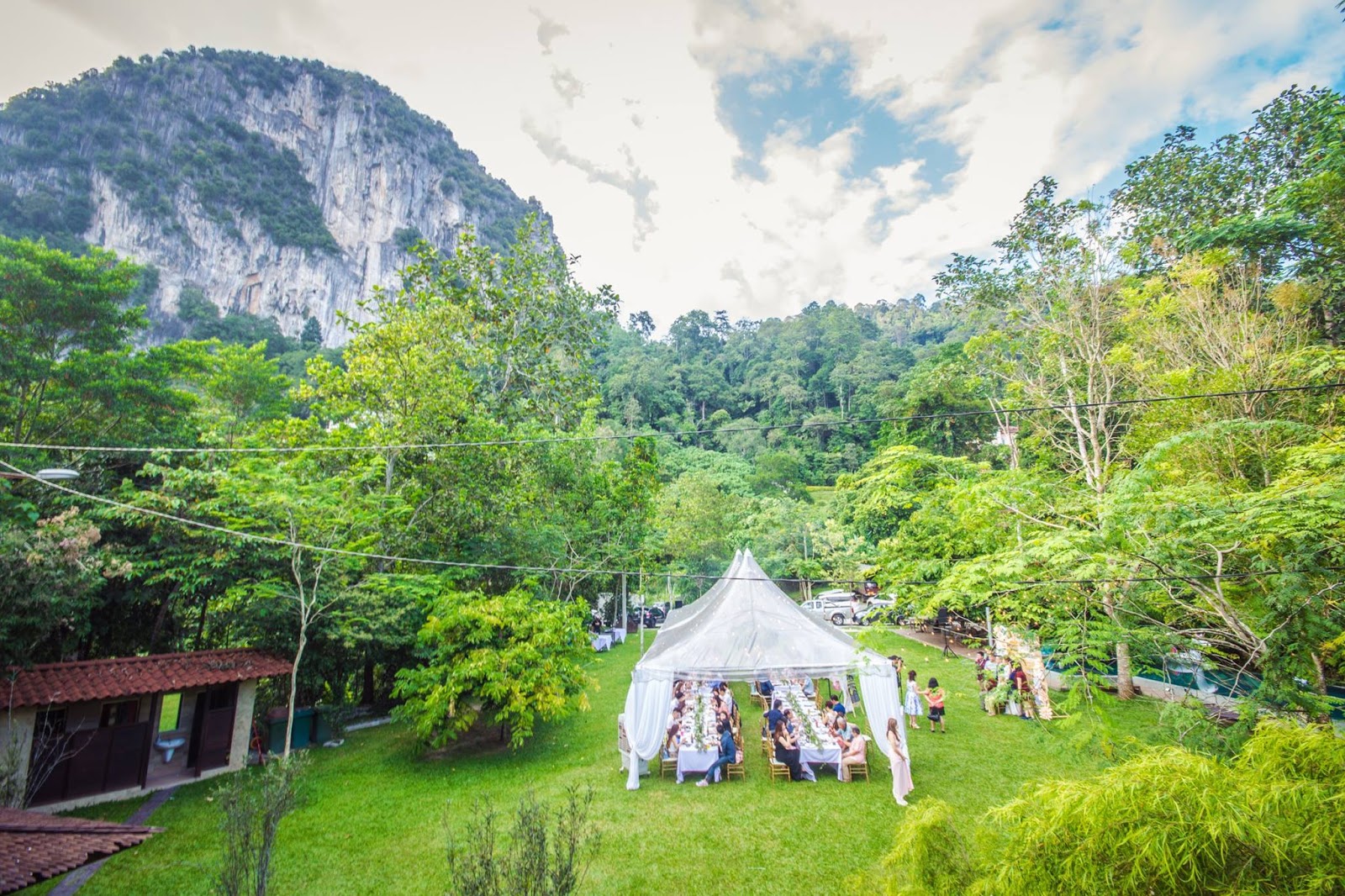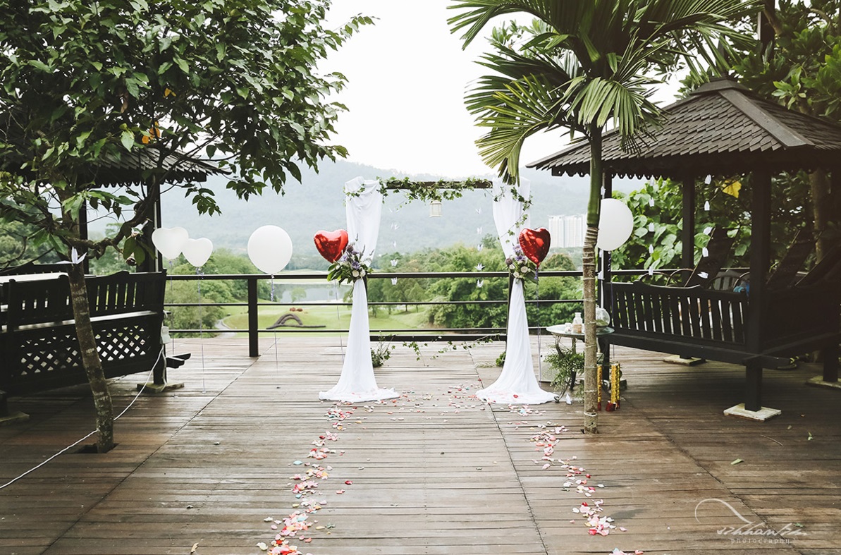 This location is on a hilltop surrounded with 360° views of the Kanching Rainforest Reserve, situated 30 minute drive away from the centre of Kuala Lumpur. The Retreat is private access, in a gated & guarded community. Ample car parking spaces are available. There are viewing decks with scenic views overlooking mountains (Bukit Takun/Anak Bukit Takun), a lake & golf course. It is a private wedding venue in Malaysia.