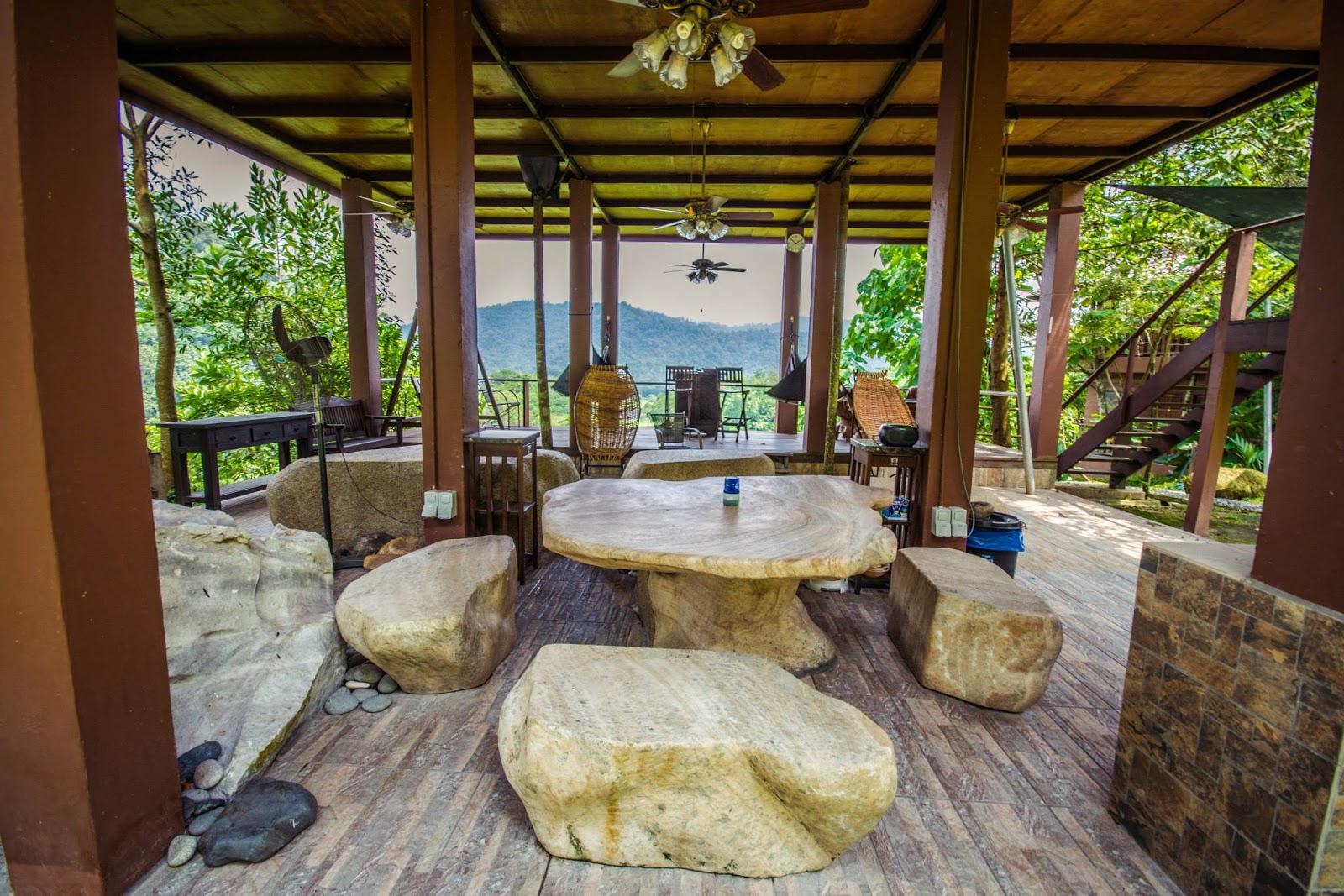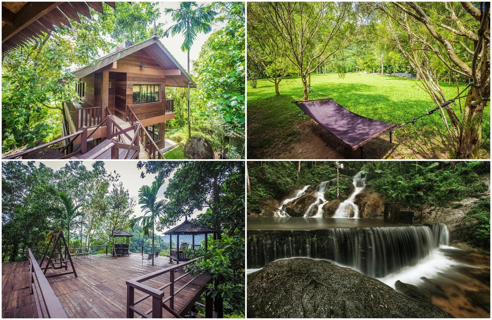 Excellent place with a Great view of the golf course and a very beautiful view of the hills! Some people mentioned that you will see monkeys coming by near you and will try snatch the food in your hands. Overall very relaxing place to be. There are hammocks, swing, fishing pond, wooden decks, rustic accommodation (villa and container), pavilion, great pool for your photography purposes. Great scenery, fresh air and clean environment but there are mosquitoes. The Gazebo has an outdoor kitchen for those who wish to cook. Kanching Waterfalls – 7 tiers beautiful waterfalls (5 min drive away)