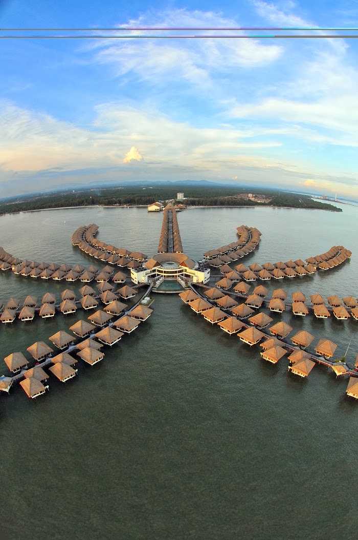 | The resort stretches out from the Sepang coastline, almost a kilometer into the sheltered waters of the Straits of Malacca with 392 luxuriously appointed sea villas that shape a palm tree. |