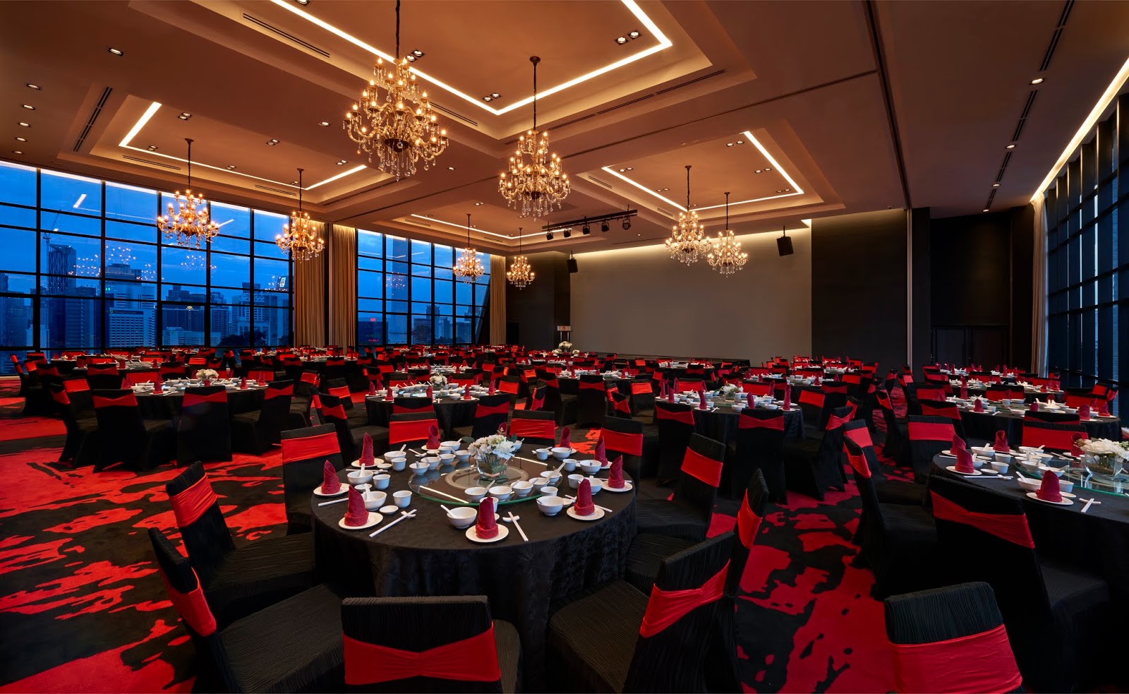 Capacity: 270 Pax (banquet | A new, absolutely stylish wedding venue with an elegant classic set-up, RED by Sirocco, Kuala Lumpur is impressively decorated with a touch of RED, the most auspicious color by the standards of many cultures. Red symbolizes love, prosperity and joy.