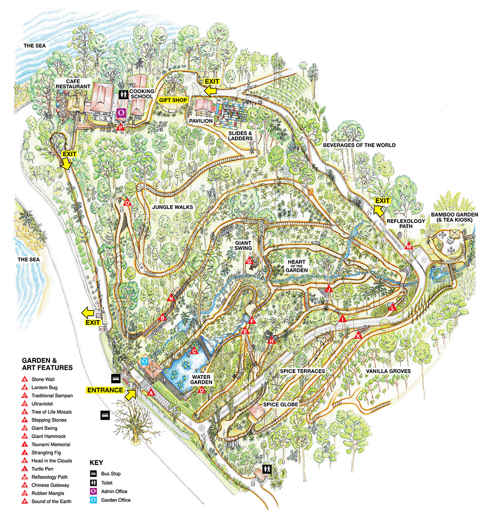 The lush Bamboo Garden is located deep in the heart of Tropical Spice Garden. A tranquil, romantic setting complete with a bubbling man-made stream.