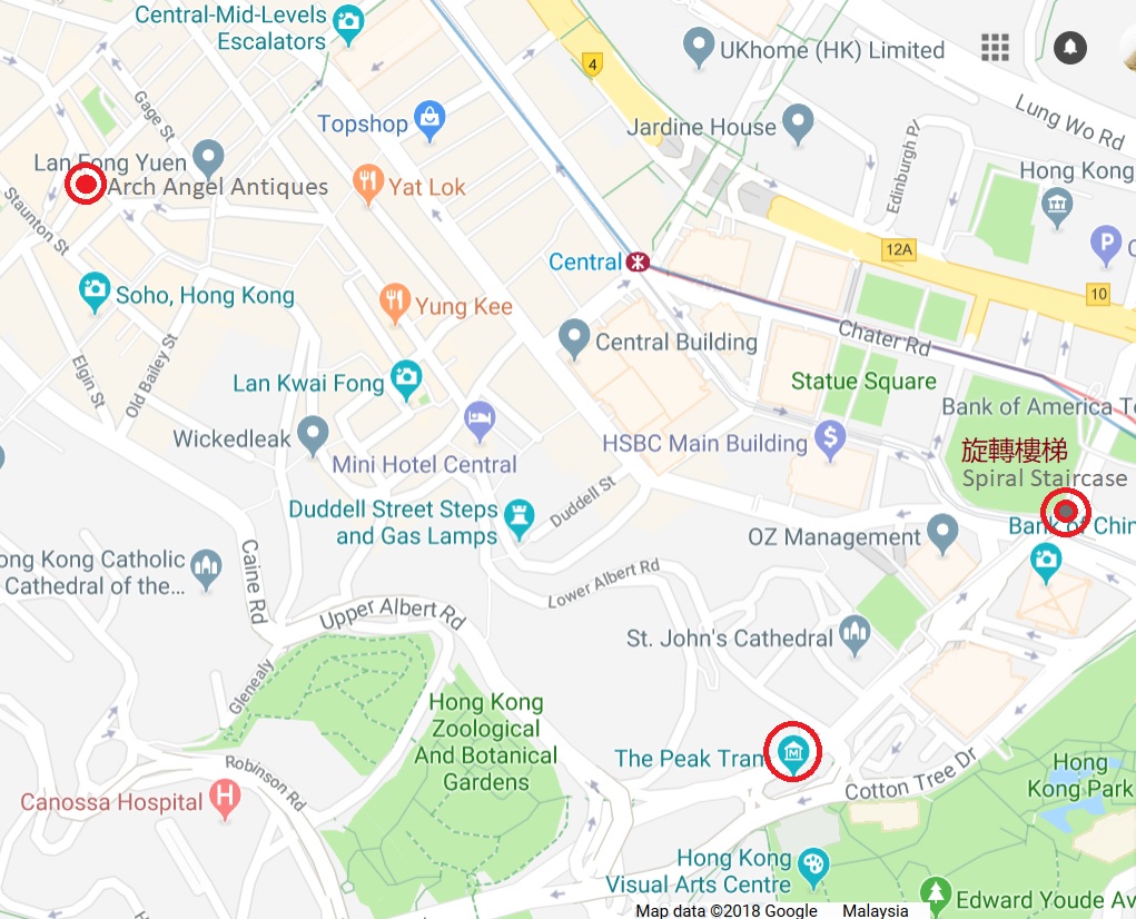 Map of pre-wedding photoshoot locations in Hong Kong Island |